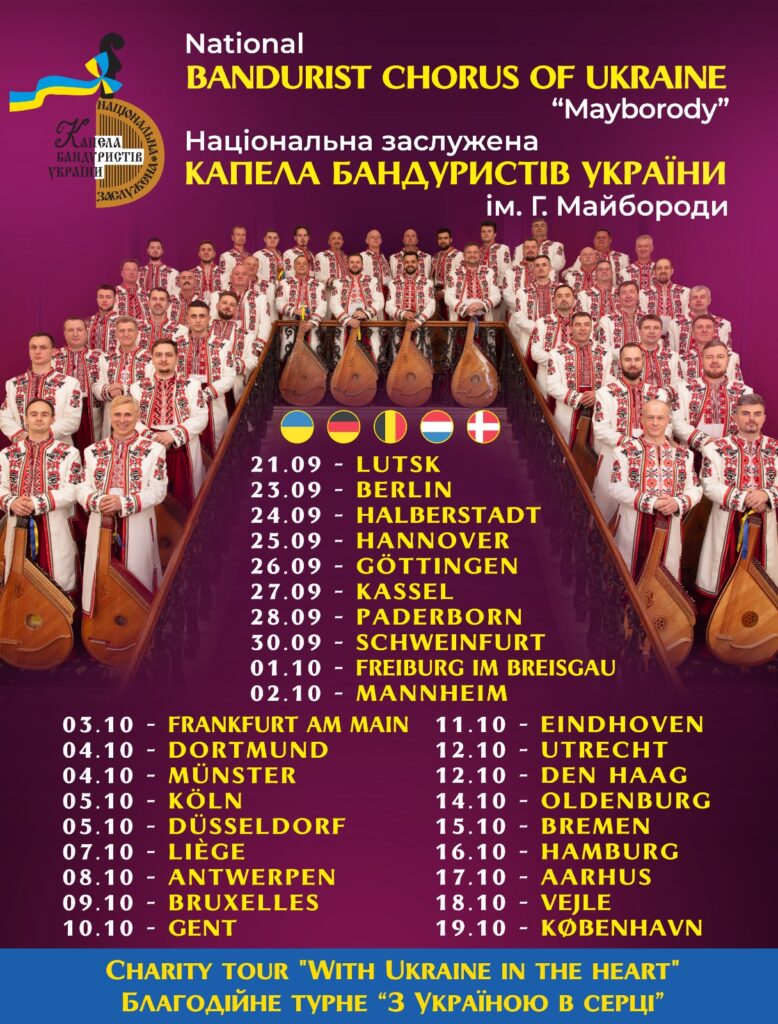 Найстаріший творчий колектив України, якому цьогоріч виповнюється 107 років — Національна заслужена капела бандуристів України імені Г. І. Майбороди, розпочинає благодійне концертне турне країнами Європейського Союзу.