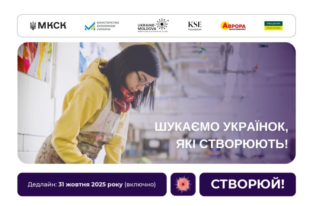 Тривають останні тижні подачі заявок на грантову підтримку для масштабування креативних індустрій та виробничого бізнесу — дедлайн 31 жовтня 2025 року. Програма «СТВОРЮЙ!», за підтримки Міністерства культури та стратегічних комунікацій України, спрямована на допомогу українкам, які розвивають бізнес у сфері виробництва, переробки або культурних індустрій із виробничою складовою. Загальний бюджет другого етапу перевищує $1 000 000, а максимальний розмір гранту — до $15 000.