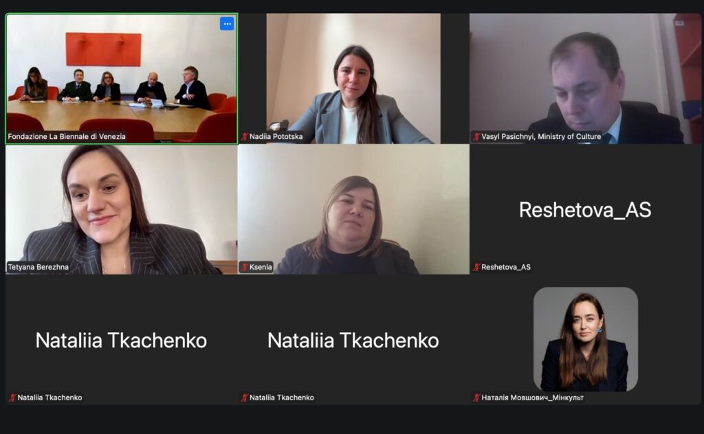 Україна активно готується до участі у 61-й Венеційській бієнале. Віцепрем’єр-міністерка з питань гуманітарної політики – Міністерка культури України Тетяна Бережна провела онлайн-зустріч із Президентом Венеційської бієнале Пьєтранжело Буттафуоко. У розмові також взяли участь представники керівництва Фонду бієнале, кураторська команда української експозиції та представники Міністерства культури України.