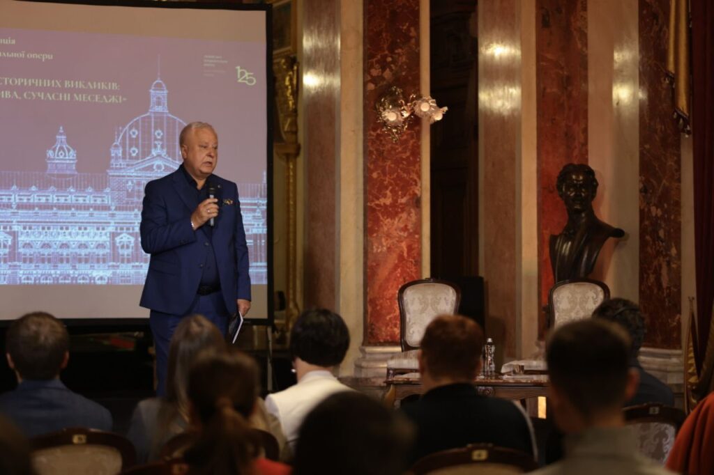 З вітальним словом до учасників та гостей заходу звернувся Василь Вовкун, генеральний директор — художній керівник Львівської національної опери, народний артист України, лауреат Національної премії України імені Тараса Шевченка. Він звернув увагу на унікальність досвіду Львівської опери, яка незважаючи на складні умови, продовжувала працювати, зберігаючи колектив, репертуар і підтримуючи зв’язок із глядачем.