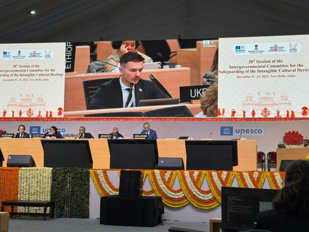 8 грудня у місті Нью-Делі, Республіка Індія, стартувала 20-та сесія Міжурядового комітету з охорони нематеріальної культурної спадщини ЮНЕСКО. Комітет є керівним органом Конвенції з охорони нематеріальної культурної спадщини, головним міжнародним майданчиком для моніторингу виконання Конвенції 2003 року, розгляду номінацій, звітів держав-учасниць, ухвалення рішень та визначення пріоритетних напрямів міжнародної допомоги.