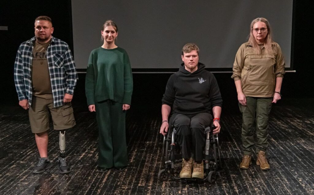 На малій сцені — не професійні актори, а справжні учасники бойових дій з Рівненщини, які відверто розповідають про своє життя: дитинство, фронт і шлях повернення до мирного існування. Їхні сповіді — це театр правди, де слово, присутність і пам’ять мають справжню силу.